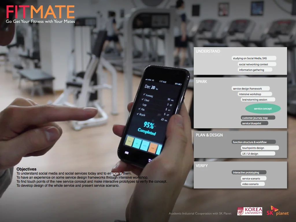FITMATE is a body management service in combination with Social Network Service. It helps users achieve their goal in body management by competition among their MATEs who are connected by FITMATE through online and offline services. Contrary to other existing services or mobile applications, FITMATE provides a total service which leads users to do “really” workout and to improve users’ quality of life.